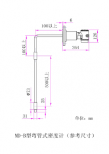 1: 直接式?在線液體密度計傳感器部分間距最少為200mm,直徑為50mm, 現場不能小于這些尺寸安裝,如選擇彎曲型密度計,請測量好可以伸進管內的法蘭和長度尺寸.