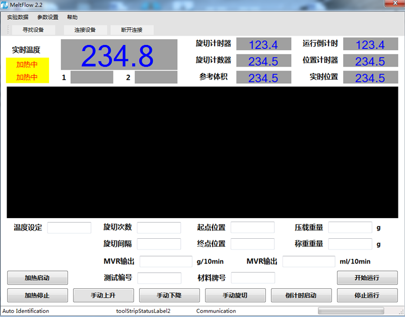 - 測(cè)試時(shí)可選擇質(zhì)量法,或體積法,或兩種測(cè)試方法同時(shí)進(jìn)行,并可計(jì)算熔融密度。兩種方法均為活塞桿移動(dòng)到某位置時(shí)開(kāi)始測(cè)試。